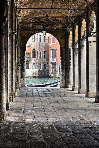 Sottoportego es un pasaje cubierto que se encuentra bajo edificios privados y que desembocan en algunas calles. Suelen unir dos edificios del mismo dueño y a menudo desembocar en una corte (patio común a varias casas, sin salida).