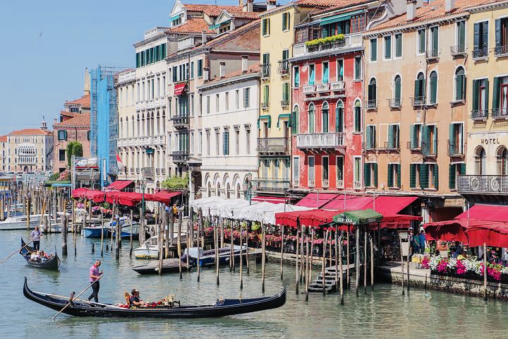 Si seguís el itinerario natural hasta Rialto, atravesaréis los Campi más populares: San Barnaba, Santa Margherita y San Polo son 3 bulliciosas plazas en las que podéis deteneros a tomar un ombra para abrir el apetito. Así llegaréis hasta el Mercado de Rialto, una zona ideal para almorzar, si todavía no lo habéis hecho, en el que las ofertas son abundantes y variadas.