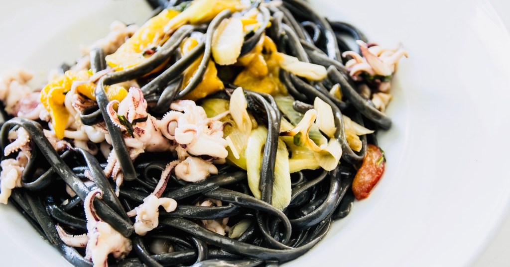 Como os dije antes, la pasta, el arroz, las verduras y, las sopas en invierno, forman parte de los primeros platos de los menús. Entre ellos, la variedad es enorme. La pasta en general, con pescados y/o mariscos principalmente, ocupa un lugar privilegiado y, como curiosidad, os diré que no se suele comer pan con la pasta, salvo que queráis rebañar al final la rica salsa que quede en el plato.