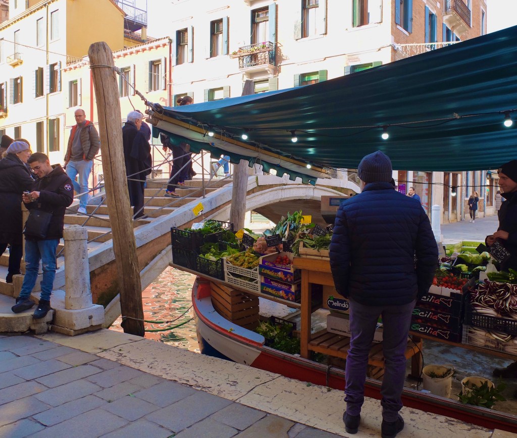 Junto al puente suele haber una barca amarrada en la Fondamenta que vende verduras y frutas frescas, con lo que el rinconcito se convierte en una preciosidad.