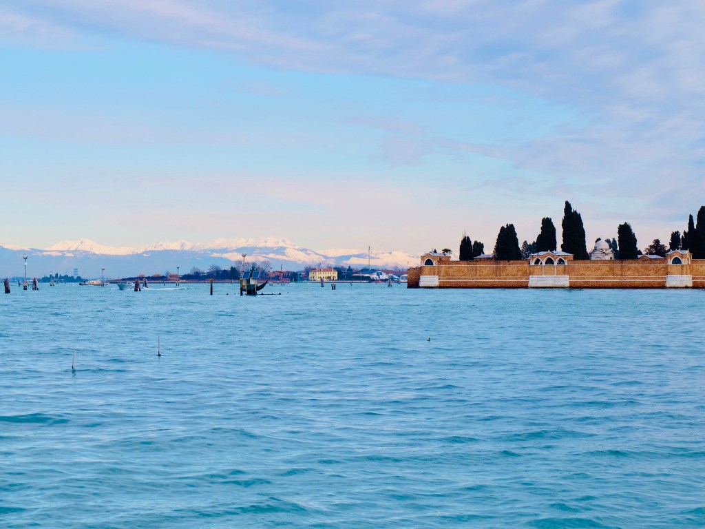 A mí me encanta la vista que de la isla se tiene desde Fondamente Nuove, a pie del embarcadero, camino de las islas, la visión del ladrillo, la piedra blanca y las cúpulas de los cipreses en el agua de la laguna, en un día claro, de cielo despejado. Y si al fondo se ven los Dolomitas nevados… hay imágenes que se quedan en la retina para siempre y esta es una de ellas.