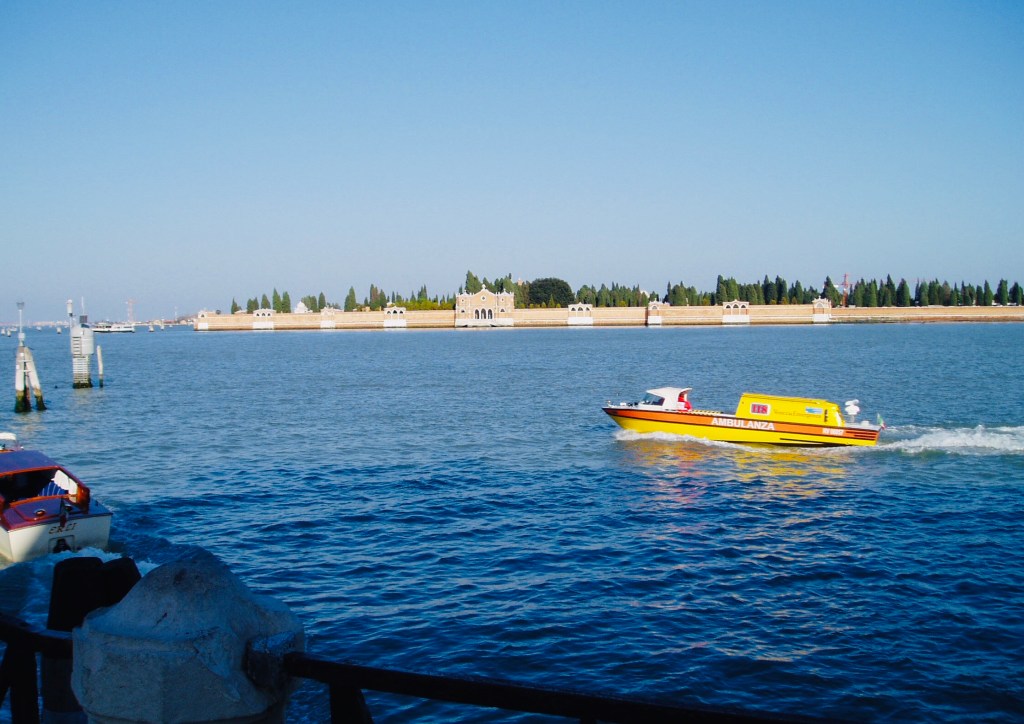 En la Serenissima, los muertos se enterraban en las Iglesias y en los Campi, pero llegó Napoleón a ocupar la ciudad, dijo que aquello no era muy salubre y mandó que estos entierros se realizaran fuera de Venecia.