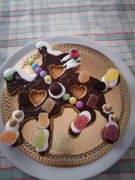 La masa se prepara con harina, mantequilla, azúcar, huevos y vainilla. Se hornea y después se le añade el glaseado a base de claras de huevos, azúcar glas y zumo de limón. Finalmente, se decora con chocolates, figuras de azúcar y chocolatinas.