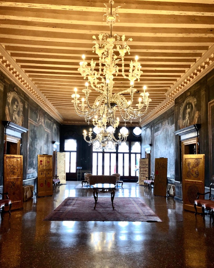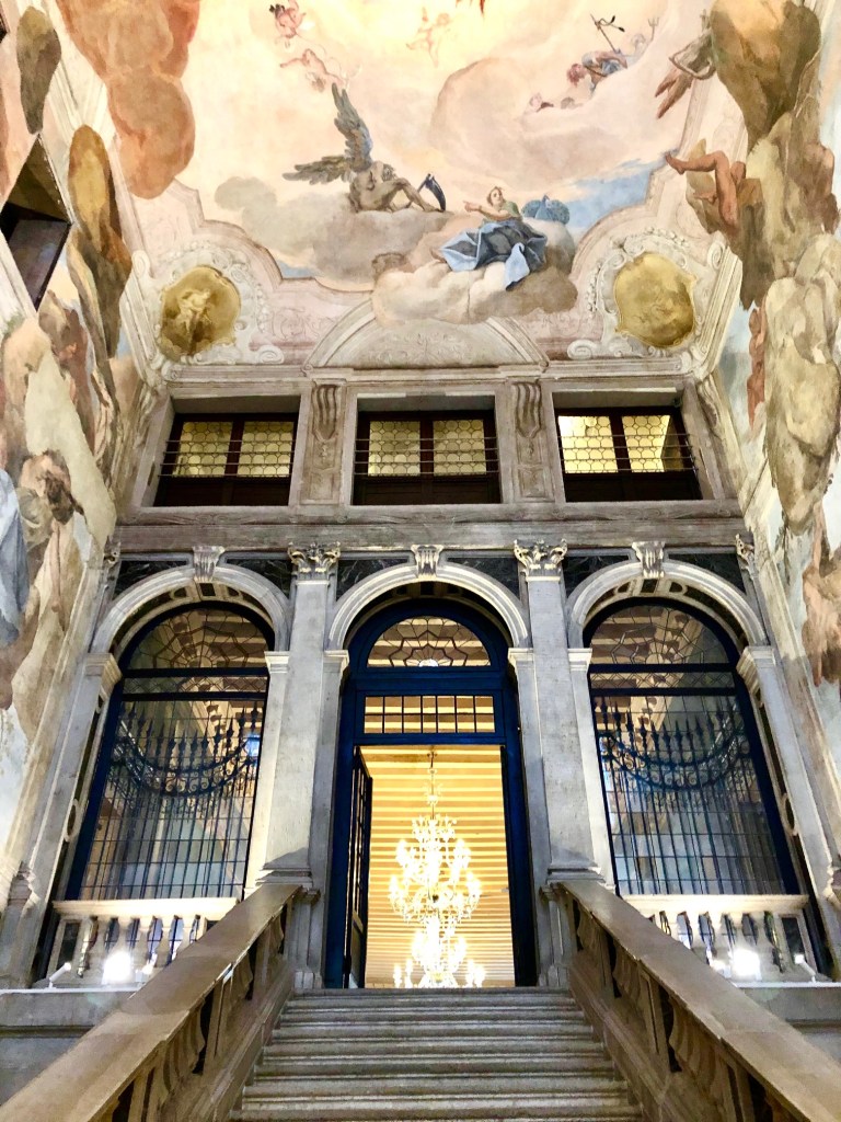 Este Palacio, lo descubrí el año pasado. Leí algo sobre él no recuerdo dónde y como estábamos alojados al lado, nos acercamos a probar suerte. Preguntamos en recepción si podíamos ver la escalera y nos dejaron. Como era enero y temporada baja, no nos cruzamos con ningún huésped, así que pasamos un buen rato moviéndonos a nuestro antojo por las salas de la primera planta, disfrutando de las obras de arte, las vistas al Gran Canal y la atmósfera histórica y lujosa de las salitas.