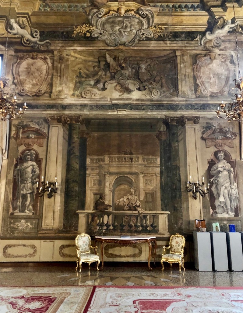 El Portego es el amplio salón que en la primera planta cubre longitudinalmente todo el espacio que va desde la fachada hasta la parte de atrás y está circundado por muchas salas principales ricamente decoradas como la biblioteca, la sala de los amigos o la suite de Sebastiano Ricci. En el resto de estancias de esta primera planta, hay varias salas con ricos estucos y frescos, tapicerías suntuosas y mobiliario de época. Pasamos un rato muy agradable turbados con tanta belleza pero sobre todo, sorprendidos por no haber oído hablar de ello hasta entonces.