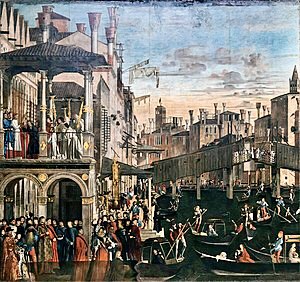 En las Galerías de la Academia y en el propio museo de Ca´Rezzonico, se exhiben algunas obras de pintores italianos en los que aparecen representados estos compartimientos. Como el maravilloso “El Milagro de la Santa Cruz en el Puente de Rialto” de Carpaccio, la primera representación de un felze de la que se tiene constancia. Si os fijáis bien, en este caso son solamente unos toldos, pero el felze fue evolucionando hasta convertirse en verdaderas mini casitas dentro de la góndola. Este cuadro es uno de mis favoritos porque aparece el puente antiguo de madera, con las dos rampas móviles que podían levantarse para permitir el paso de las embarcaciones de mayor envergadura.
