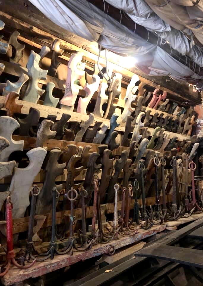 Anonadada me quedé con la enorme colección de forcole, con algunas piezas antiguas que ya no se usan y que en su momento formaron parte del oficio del remer… hasta una felze, la cubierta que se colocaba en el centro de las góndolas, de las que os hablé en esta entrada.