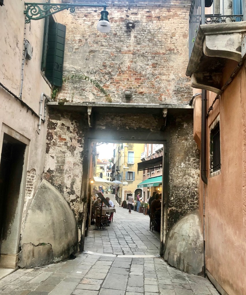 Por un lado, evitaban que los malhechores pudieran esconderse para escapar de las autoridades o para asaltar a los ciudadanos durante la noche. Pensad que las calles eran muy oscuras y las esquinas venecianas, en tiempos en que no había iluminación callejera, podían resultar peligrosas y traicioneras al caer el sol. Si caminar por sus estrechas callejuelas os resulta inquietante de noche actualmente, por la poca luz artificial que existe en muchas de ellas, imaginad cuando estas pocas farolas ni siquiera existían. Así que los venecianos, para protegerse de asaltadores, delincuentes y demás personajes con malas pulgadas, inventaron estos elementos a los que también se llama “jorobas anti bandidos”.
