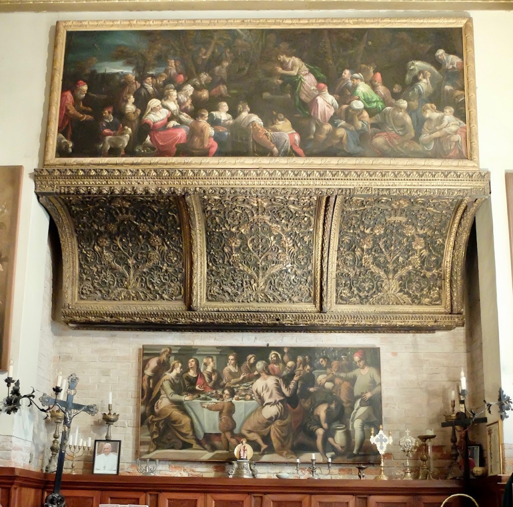 Paolo Veronese también está representado en San Giacomo. Podréis verlo en el transepto norte y en los techos de la sacristía nueva pero es esencial en la decoración Palma el Joven, especialmente, en la sacristía vieja, donde un ciclo pictórico de este artista cubre las paredes.