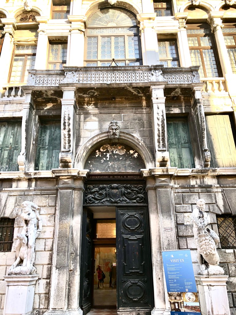 Por otro lado, el Palacio era ya famoso por su biblioteca, a la que solo podían acceder los nobles venecianos y que contenía volúmenes considerados prohibidos por herejes. Se abría al público dos veces por semana e, incluso, había un bibliotecario, algo inaudito entonces. La más rica y completa de entre las disponibles en la época, con un patrimonio de 60.000 volúmenes, incluye el único manuscrito autografiado de Vivaldi conservado en Venecia, autógrafos de Listz y también del propio Benedetto Marcello, compositor veneciano que da nombre al conservatorio.