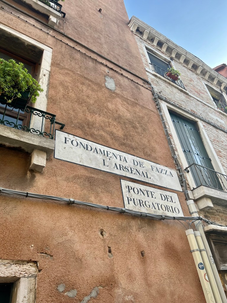 Y los venecianos, en agradecimiento, pusieron el nombre de las tres partes en que se divide la Divina Comedia a las casas donde vivían los patrones del Arsenal, junto a los muros de éste, así como a los puentes que las conectaban a la fondamenta.
