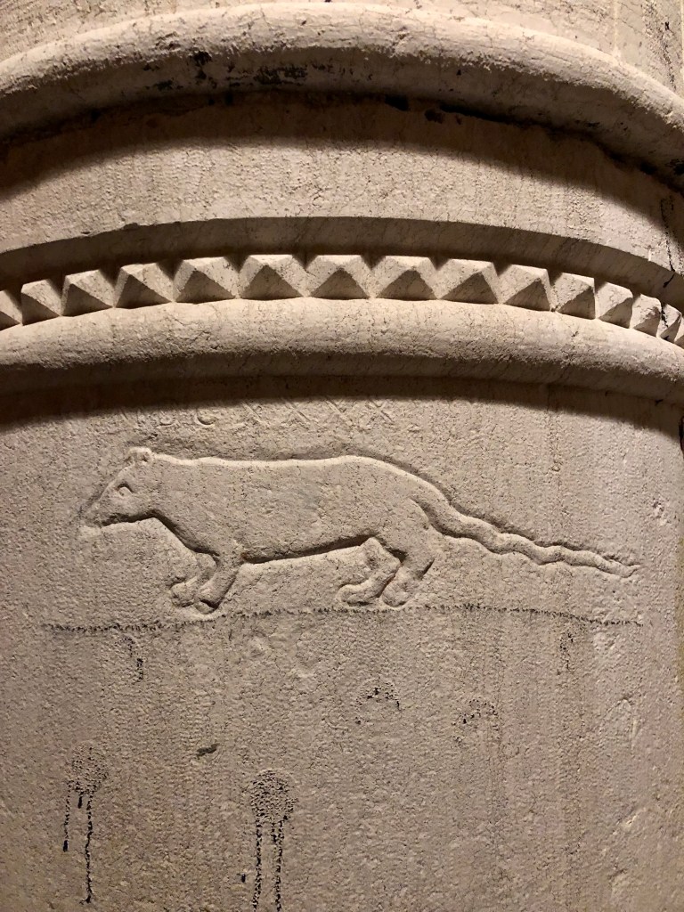 Y es que en este lugar se encuentra esculpida en una columna una rata gigante, llamada pantegana en veneciano. La rata, completita y con su larga cola, tiene anotada encima la fecha del probable avistamiento: 1643. Supongo que el espectador quedó tan impresionado que no tuvo más remedio que dejar constancia para la posteridad y ahí sigue siglos después.